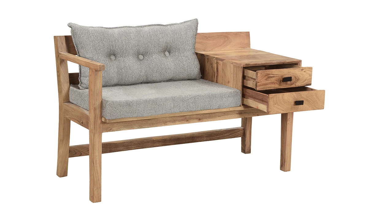 Ce banc d’intérieur fabriqué artisanalement est également équipé de deux tiroirs qui vous permettront de ranger vos effets personnels. MENDOZA a tout de fonctionnel !