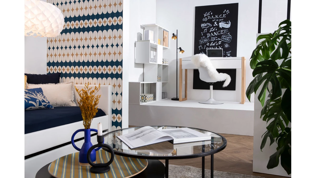 Composée de panneaux de particules de bois agglomérés avec un revêtement laqué mat, pour la structure, et brillant pour les parties pleines, cette bibliothèque design, épurée et intemporelle s’intègre en douceur dans tous les intérieurs !