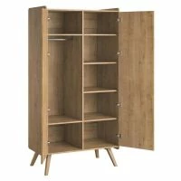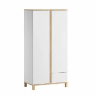 Armoire Scandinave Avec Penderie Et étagères Finition Blanc Mat Et Bois Chêne Clair L90 Cm EILIE