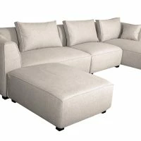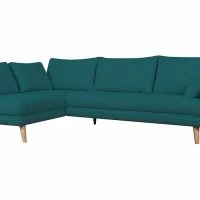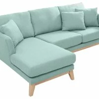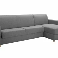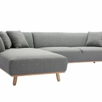 Canapé D’angle Réversible Et Convertible Avec Coffre 4 Places En Tissu Gris Et Bois Clair GRAHAM