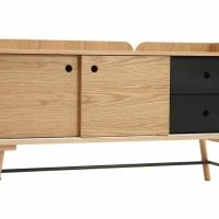 Buffet Japandi En Bois Clair Chêne Et Gris Foncé 2 Portes Coulissantes 2 Tiroirs L120 Cm JAPANSK