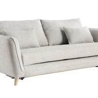 Canapé Convertible Scandinave 3 Places En Tissu Gris Clair Et Bois Clair Avec Matelas 10 Cm VENDOME