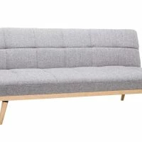 Canapé Convertible Scandinave 3 Places En Tissu Gris Clair Et Bois Clair Avec Matelas 10 Cm PAPEL