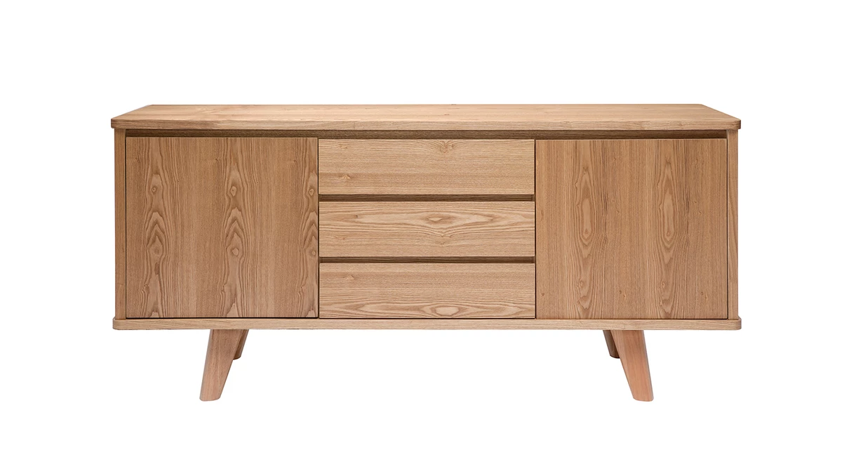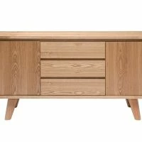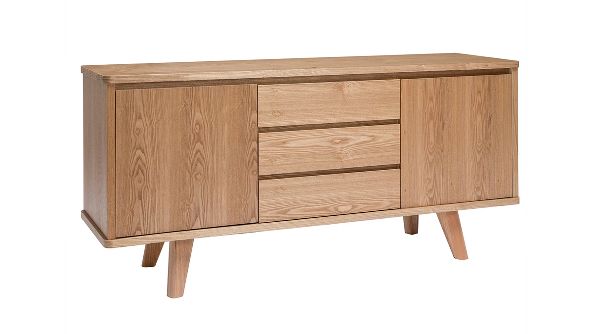 Travaillé dans un style résolument rétro, ce buffet vintage ne manque pas de charme ! Il emprunte aux meubles scandinaves des années 50, leurs pieds compas et leur ligne épurée aux angles arrondis. Ce look rétro est associé à une jolie structure finition frêne et un piètement en frêne massif pour un résultat chaleureux et indémodable.