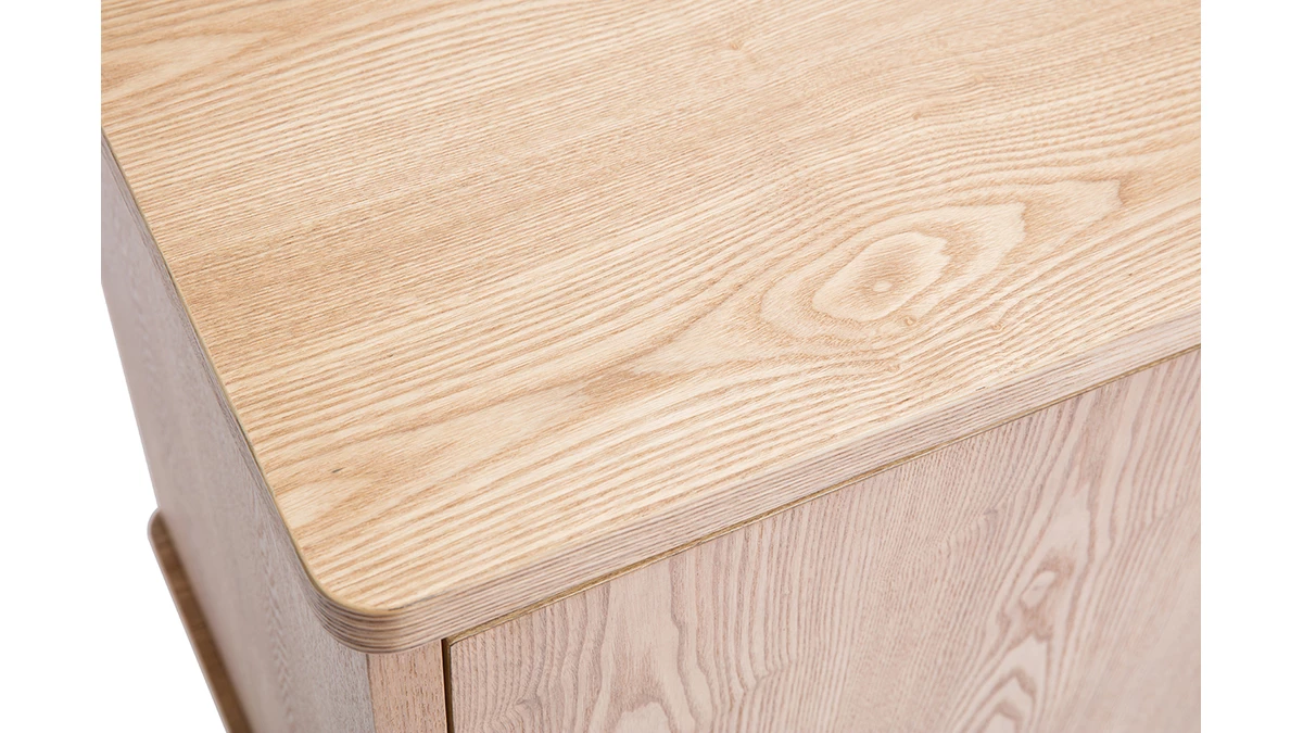 Matière : structure en panneaux de fibres de bois placage frêne ; tiroirs en mélaminé ; pieds en frêne massif