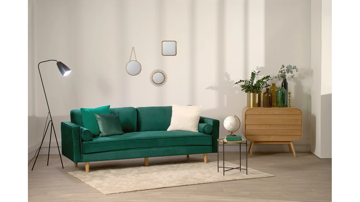 Majestueux, ce canapé 3-4 places IMPERIAL sublimera votre salon. Le velours signe son grand retour dans nos intérieurs et donne une allure incroyable à nos pièces de vie, à la fois chic et vintage ! Le velours s’inscrit dans le retour du mouvement Art déco et apporte une touche chaleureuse et réconfortante immédiate à votre intérieur. Tendance mais aussi indémodable, il est très doux et agréable au toucher ! Ce canapé possède un charme inconditionnel qui saura étonner vos invités. Ses finitions parfaitement réussies lui donnent un look… impérial !