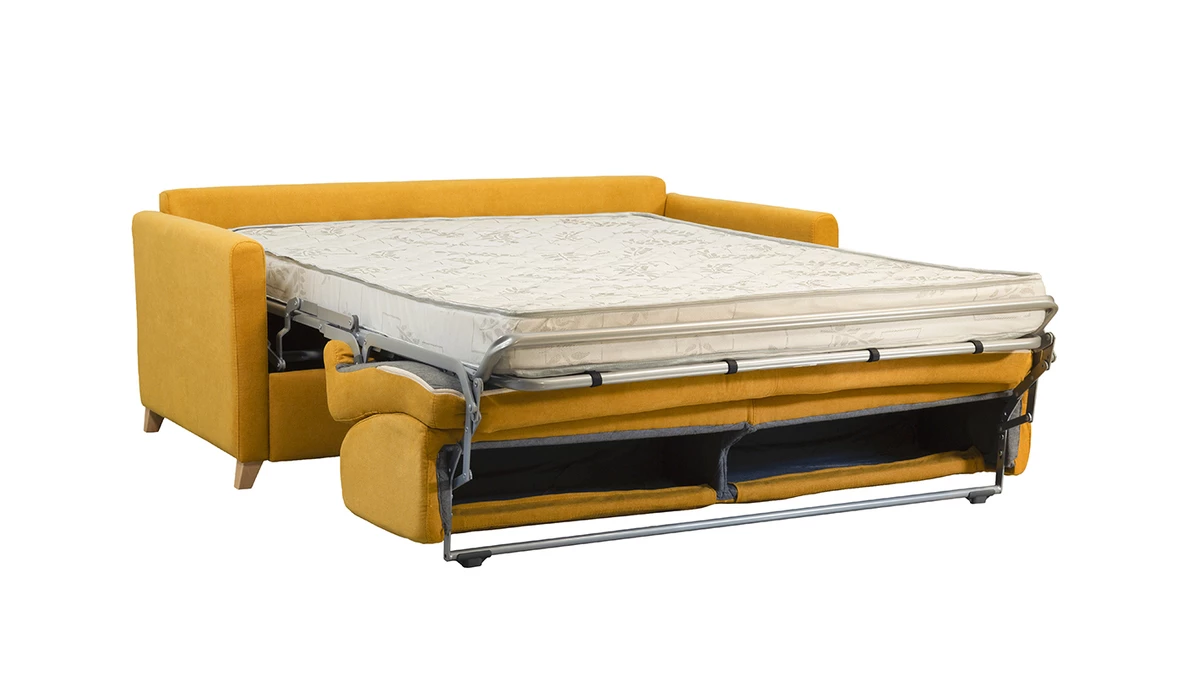 Matière : sapin massif, aggloméré de bois, mécanique électro-soudée en acier haute résistance, pieds en hêtre massif