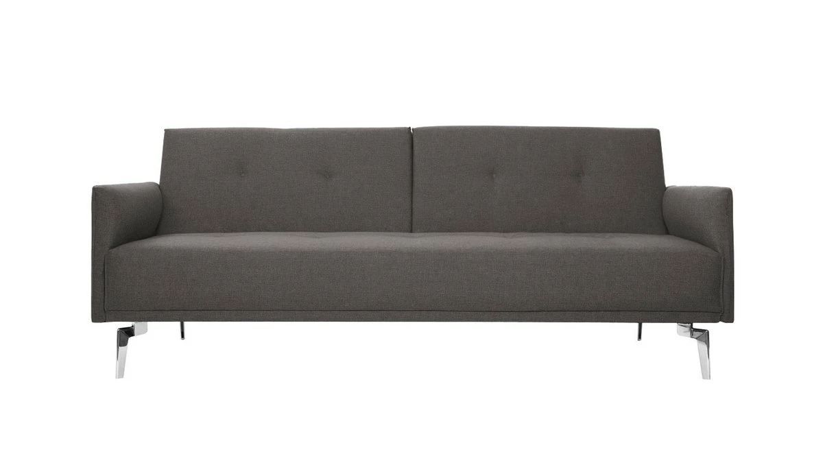 Revêtu d’un magnifique tissu gris, ce canapé design habillera la pièce et réchauffera un salon minimaliste. Son dossier capitonné et son piètement en métal en font une assise moderne et pleine de style. Le mariage entre le gris de l’assise et le métal brillant des pieds permet d’intégrer ce canapé convertible dans une pièce à vivre à la décoration contemporaine. Accompagné de la table basse design COOPER, il fera du salon un espace tendance et raffiné.