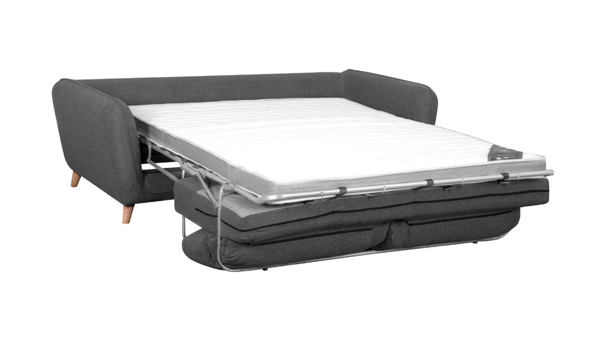 Derrière cette assise confortable au charme fou se cache un véritable lit. Equipé d’un système express, ce canapé convertible se déplie rapidement pour laisser place à un coin nuit avec matelas L183 x L133 x E10 cm. Avec CREEP, le salon se transforme en chambre à coucher d’appoint pour recevoir famille et amis en un clin d’oeil. Aménagez le coin détente idéal et un espace nuit parfaitement optimisé en disposant près de votre canapé français une petite table d’appoint accompagnée d’une belle lampe à poser.