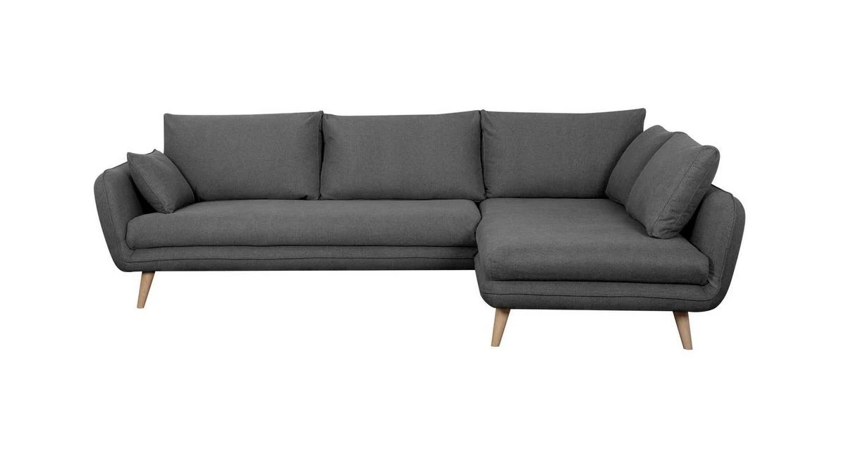 Ce canapé d’angle est une assise aussi pratique que jolie. Son revêtement en polyester gris anthracite en fait un siège intemporel et facile à intégrer dans son intérieur. Il est accompagné d’un piètement compas en hêtre massif, un bois clair et chaleureux. Sa forme épurée, ses lignes courbes et ses matériaux rappellent tout ce qui fait le charme du style nordique. Pour un salon 100 % scandinave, on complète ce canapé d’angle avec des tables gigognes en bois.