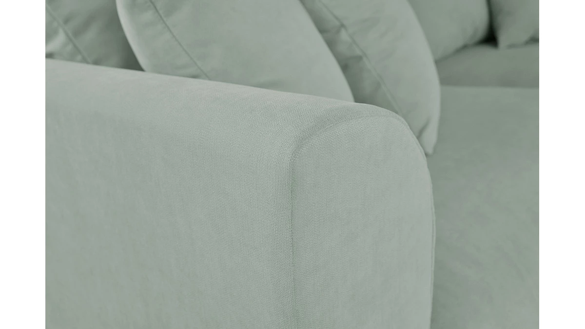 Type de mousse : assise en mousse polyuréthane haute résilience et flocons de silicone ; dossier en mousse polyuréthane et ouate ; coussins garnis de flocons de silicone