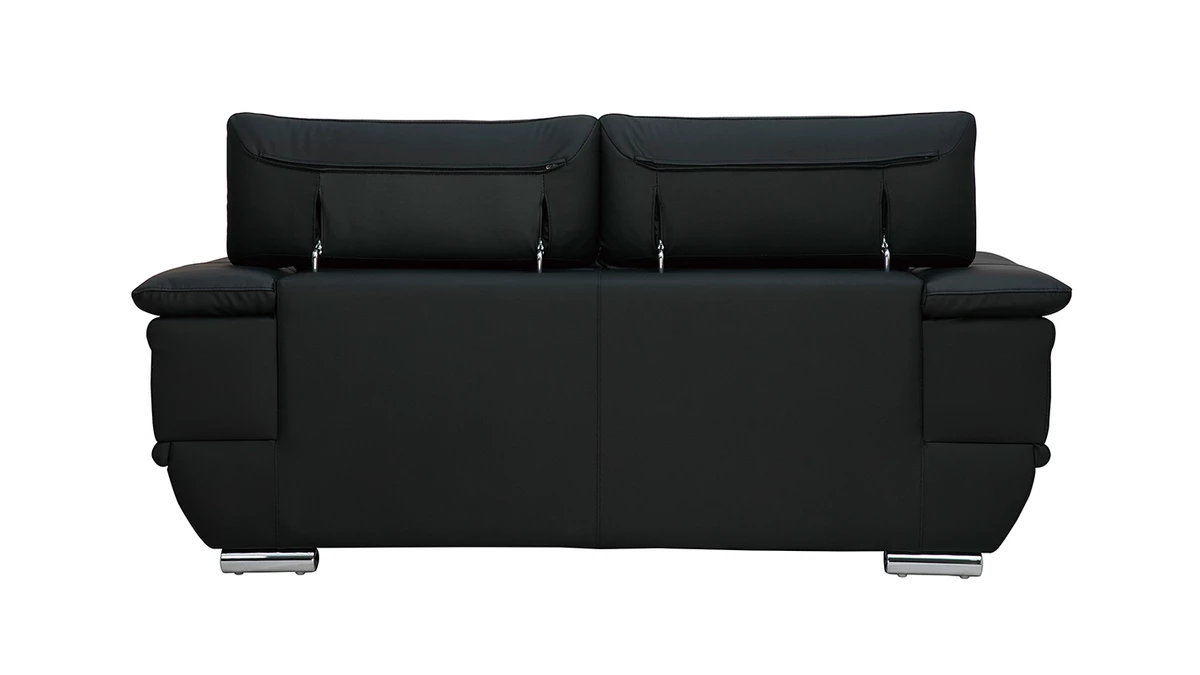 Doté de têtières ajustables, d’une assise agréable (densité assise : 26 kg/m3) et de larges accoudoirs, ce beau canapé en cuir noir sera l’allié idéal de vos moments de pure détente. Il ne vous reste plus qu’ prendre place au coeur de ce canapé 2 places aussi beau que confortable.