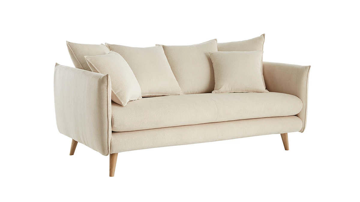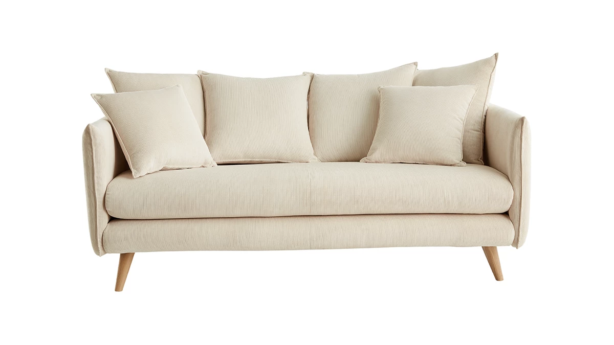Le canapé OLYMPIA invite à la convivialité et à la paresse… On craque pour la douceur de son élégant tissu en velours côtelé, la délicatesse de ses quatre pieds en hêtre massif et la justesse de ses proportions.