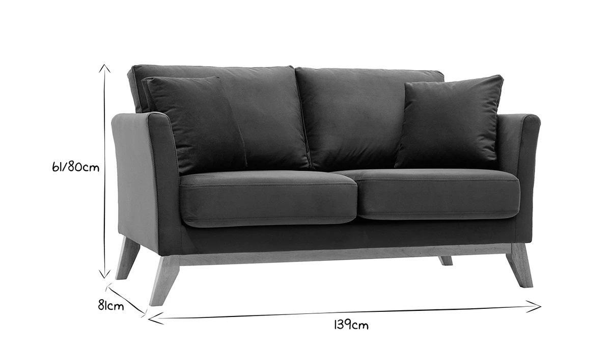 Les dimensions du canapé 2 places OSLO sont adaptées aux petits espaces. D’une longueur de 140 cm et d’une profondeur de 80 cm, ce canapé peut accueillir deux personnes sans encombrer la pièce. Grâce à ses deux gros coussins d’assise et de dossier ainsi que ses deux petits coussins d’appoint compris, il offre un confort d’assise moelleux. Et les coussins sont déhoussables, recevez sans vous inquiéter de l’entretien de votre canapé.
