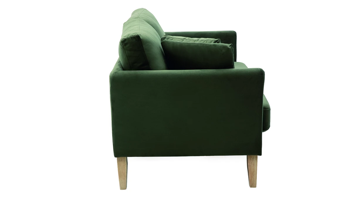 Avec son revêtement effet velours, son piètement en bois clair et son design épuré, ce petit canapé s’inscrit dans la tendance nordique. Son tissu coloré en fait une assise dans l’air du temps qui se mariera aussi bien avec une décoration d’inspiration scandinave qu’avec un intérieur contemporain.