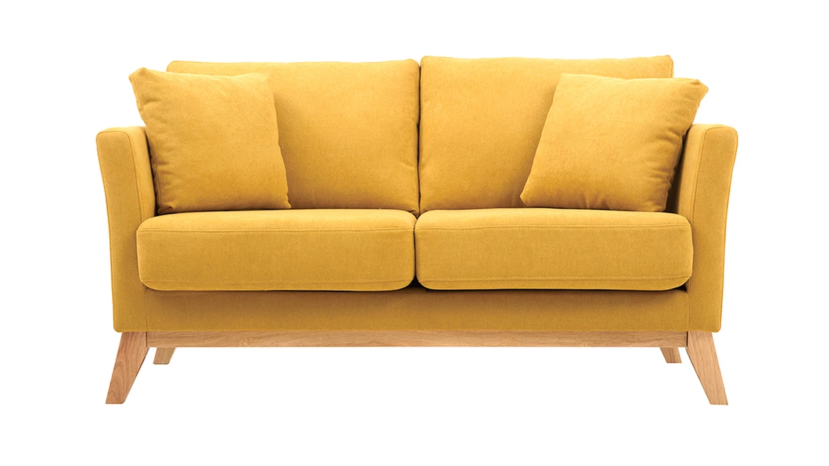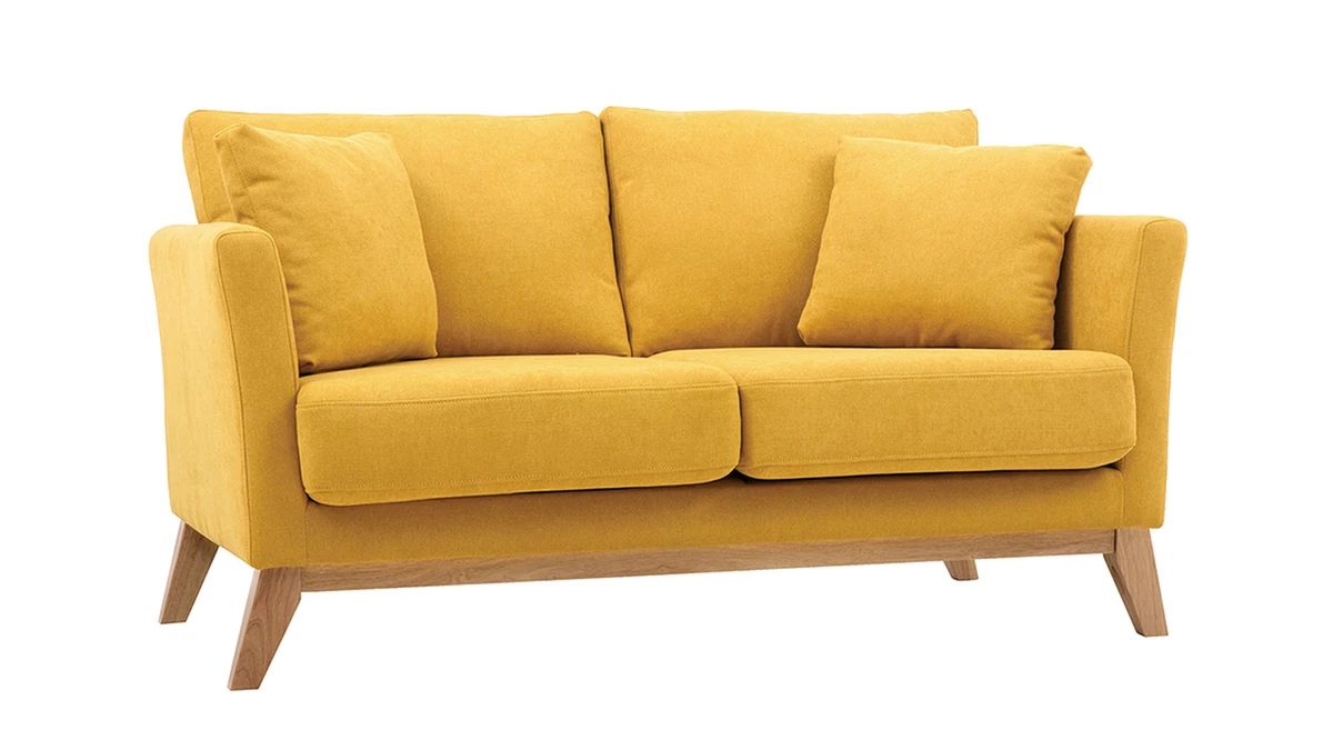 Les dimensions du canapé 2 places OSLO sont adaptées aux petits espaces. D’une longueur de 140 cm et d’une profondeur de 80 cm, ce canapé peut accueillir 2 personnes sans encombrer la pièce. Grâce à ses 2 gros coussins d’assise et de dossier ainsi que ses 2 petits coussins d’appoint compris, il offre un bon confort d’assise. Et les coussins sont déhoussables, recevez sans vous inquiéter de l’entretien de votre canapé scandinave.