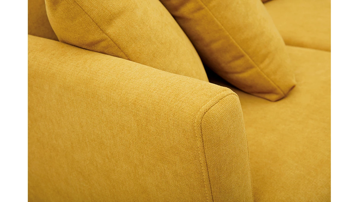 Avec son revêtement effet velours, son piètement en bois clair et son design épuré, ce petit canapé s’inscrit dans la tendance nordique. Son tissu coloré en fait une assise dans l’air du temps qui se mariera aussi bien avec une décoration d’inspiration scandinave qu’un intérieur moderne et graphique.