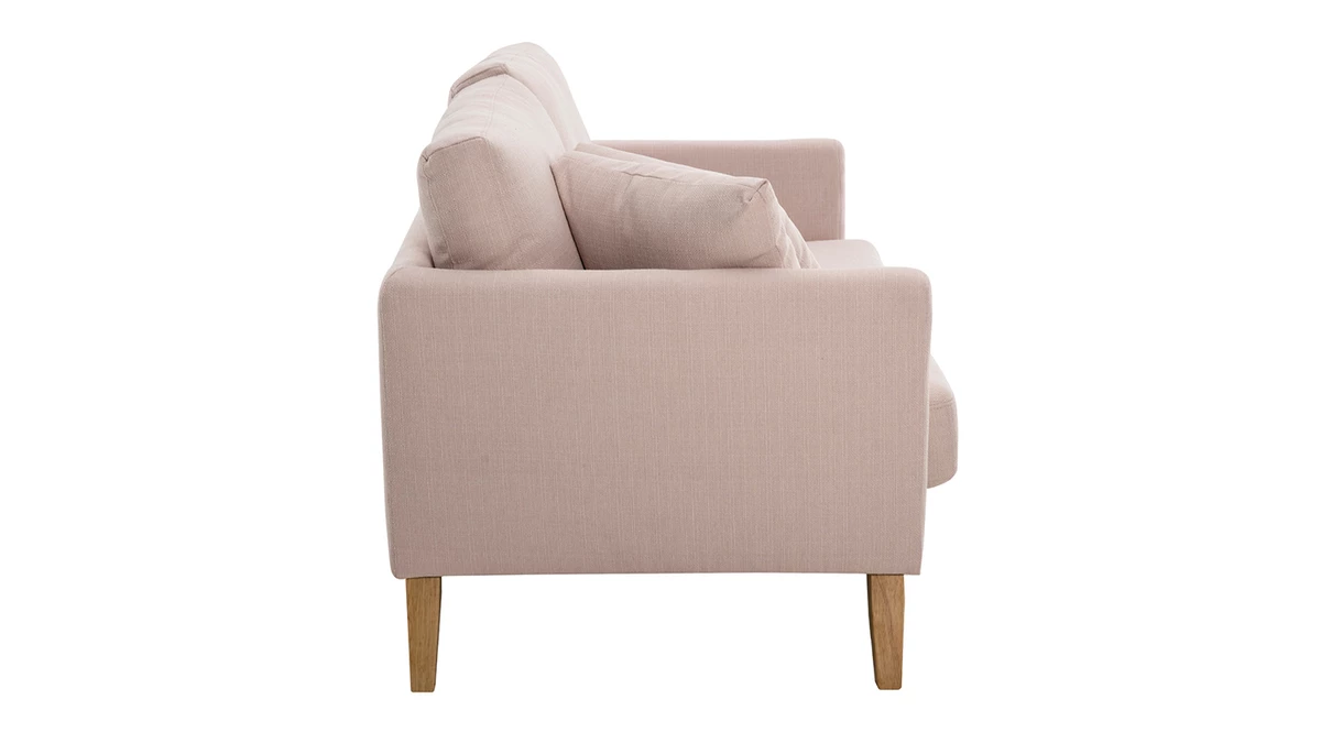 Avec son revêtement en polyester, son piètement en hévéa massif et son design épuré, ce petit canapé s’inscrit dans la tendance nordique. Son tissu rose en fait une assise dans l’air du temps qui se mariera autant avec une décoration d’inspiration scandinave que moderne.