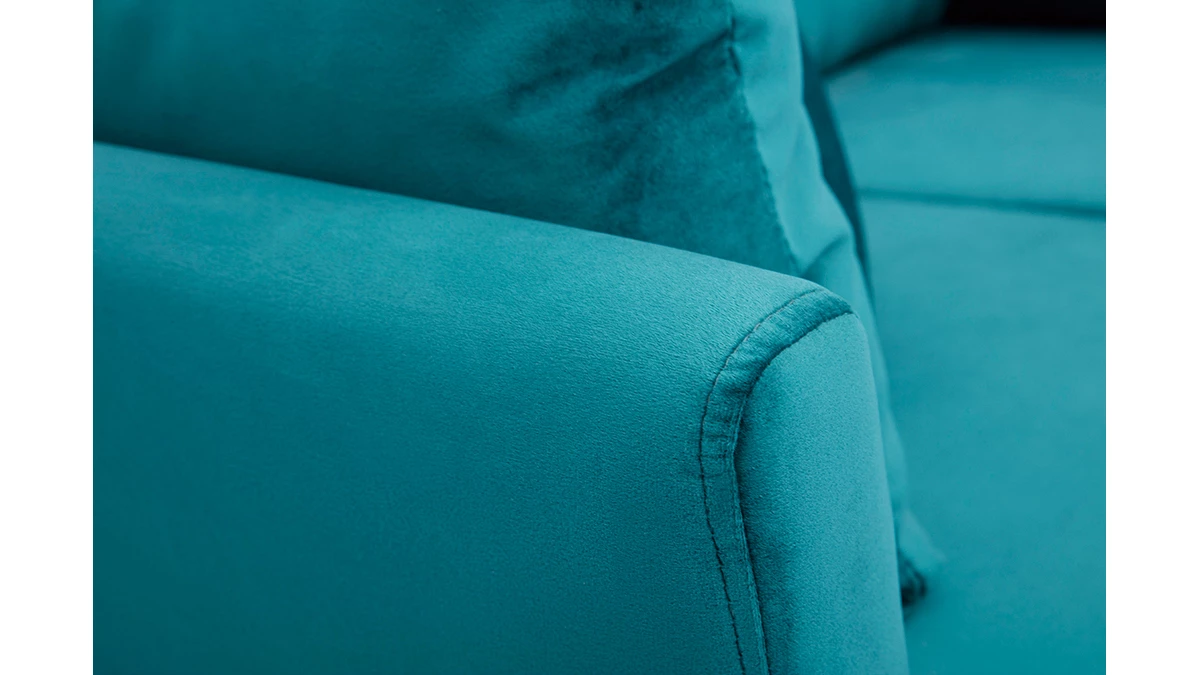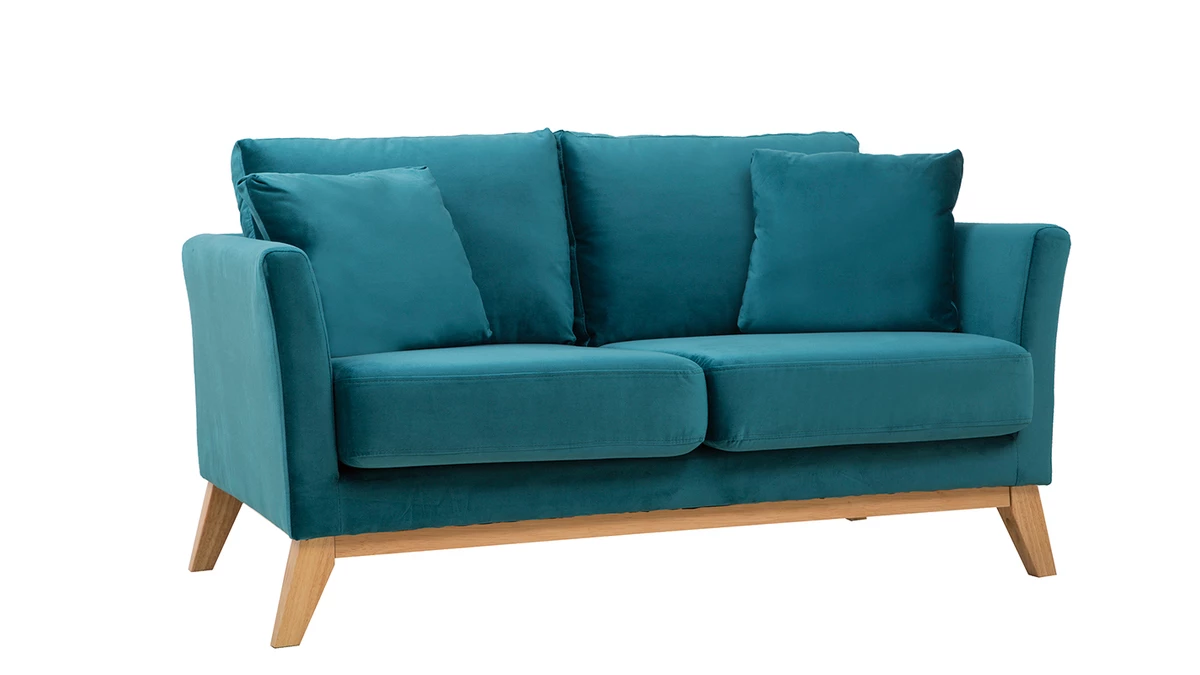 Avec son revêtement en velours, son piètement en bois clair et son design épuré, ce petit canapé s’inscrit dans la tendance nordique. Son tissu coloré en fait une assise dans l’air du temps qui se mariera aussi bien avec une décoration d’inspiration scandinave qu’un intérieur moderne et graphique.