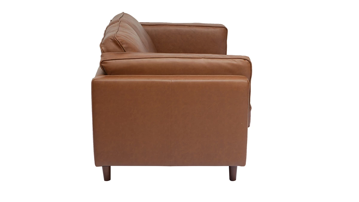 Le canapé 2 places Bradley se compose d’une structure en bouleau associée à des sangles élastiques et un rembourrage composé de mousse (polyuréthane) et fibre polyester. Il offre un accueil souple et ferme à la fois (densité d’assise : 35kg/m3). Sa conception a été pensée autour de la notion de confort avec une assise relativement profonde et un dossier haut de 50 cm.
