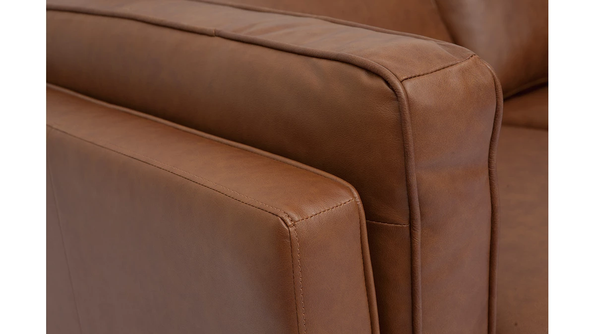 Avec son joli style vintage, le canapé 2 places BRADLEY apporte beaucoup de caractère à une pièce de vie. Ses lignes pures et essentielles mettent en exergue le joli revêtement en cuir pleine fleur (cuir de buffle) de couleur cognac qui habille l’assise, le dossier et les accoudoirs internes. Bradley est un canapé fait pour durer. Ainsi, cette pièce au charme authentique s’enrichira des marques du temps accentuant ses reflets uniques.