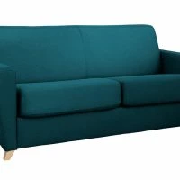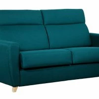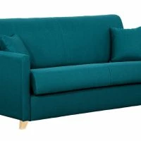 Canapé Convertible 3 Places En Tissu Bleu Canard Et Bois Clair Avec Matelas L140 Cm 12 Cm GRAHAM