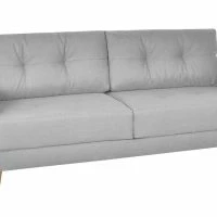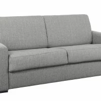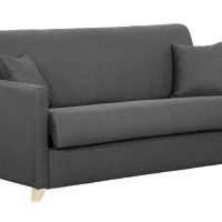 Canapé Convertible 3 Places En Tissu Gris Clair Et Bois Clair Avec Matelas L140 Cm 12 Cm GRAHAM