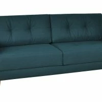 Canapé Convertible 3 Places En Tissu Velours Bleu Paon Et Bois Clair Avec Matelas 9 Cm CIGALE