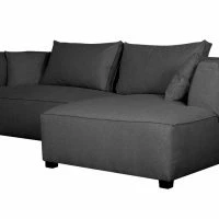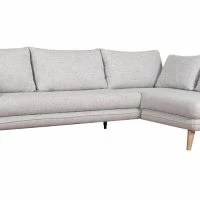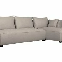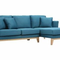 Canapé D’angle Convertible Réversible Avec Coffre 4 Places En Tissu Bleu Canard Et Bois Clair GRAHAM