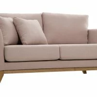 Canapé Scandinave Déhoussable 2 Places En Tissu Effet Velours Texturé Terracotta Et Bois Clair OSLO