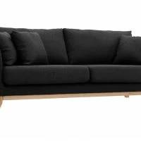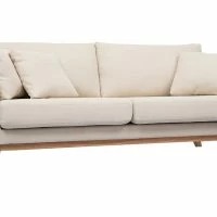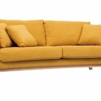 Canapé Scandinave Déhoussable 3 Places En Tissu Effet Velours Jaune Moutarde Et Bois Clair OSLO