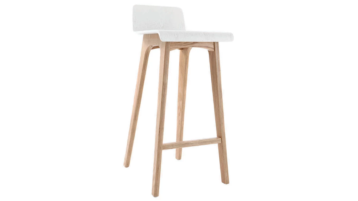 Ce tabouret de bar vous propose une esthétique minimaliste tout en étant robuste et confortable. Doté d’un solide piètement en multiplis finition frêne, il bénéficie également d’un petit dossier pour plus de confort. Grâce à sa hauteur d’assise de 75 cm, ce tabouret haut pourra accompagner une table bar ou le comptoir d’une cuisine ouverte d’environ un mètre.