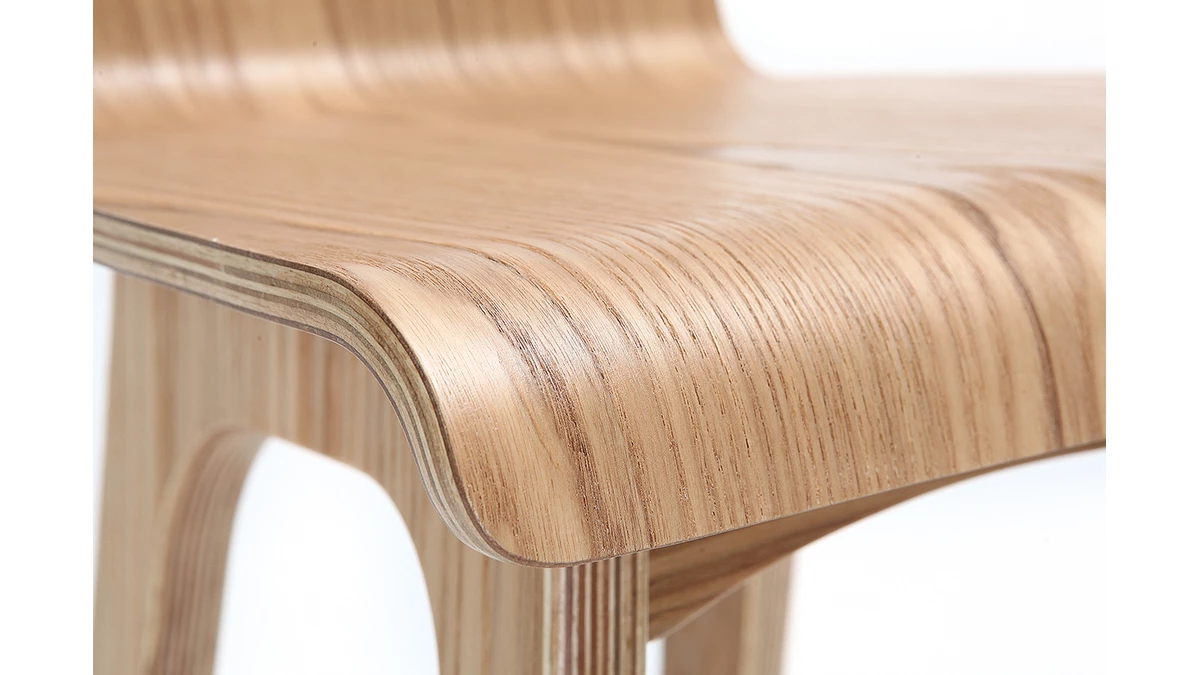 Sa finition frêne et son design épuré rappellent les codes de la tendance scandinave. Grâce à son total look bois, il peut aussi bien s’adapter à des intérieurs modernes d’inspiration nordique qu’à des espaces repas dans l’esprit nature et bohème. Les courbes de son siège apporteront une touche de douceur tout en faisant de cette assise un objet déco discret.