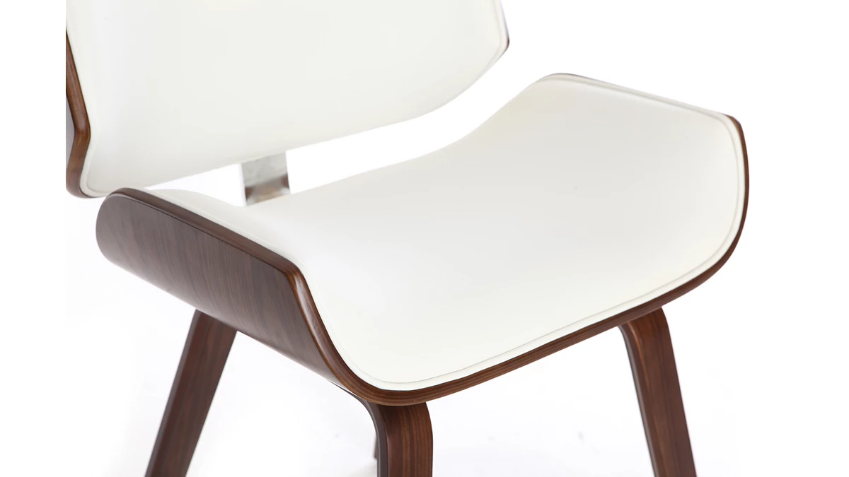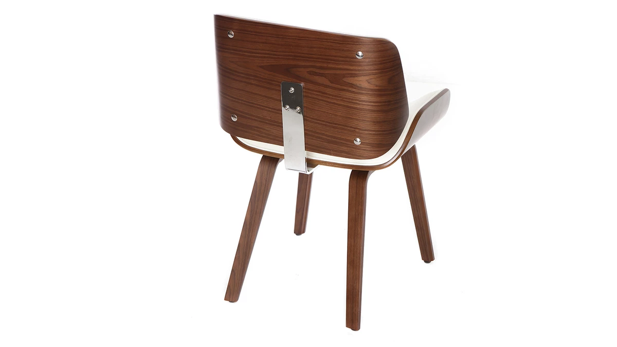 Mélange de courbes et de lignes franches, cette chaise blanche et bois foncé est un objet déco à part entière. Sa forme est inspirée du design scandinave et des pièces vintage pour un intérieur au charme authentique.