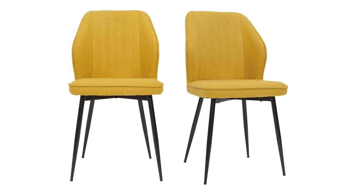 Coquettes ! Ces chaises jaune moutarde seront parfaites pour twister une table en bois ou métal noir.