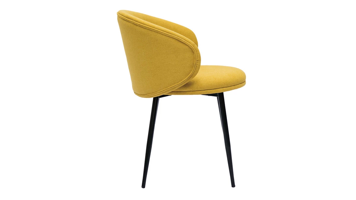 Habillé d’un tissu effet velours jaune moutarde, ce modèle de chaise design joue la carte de la douceur… L’élégant passepoil dessine les contours du siège et souligne la fluidité des formes, les ROSALIE conjuguent avec style confort et modernité.