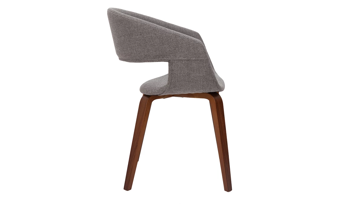 L’élégant piètement en bois foncé et le siège tout en rondeur coloris gris chiné se partagent la vedette et conjuguent avec élégance design contemporain et inspiration vintage. Les beaux volumes galbés signent un look singulier ultra tendance. Multipliées autour d’une table en bois foncé dans un univers rétro chic, ce modèle de chaise en bois foncé moderne apportera du cachet et une note très raffinée à votre coin repas.
