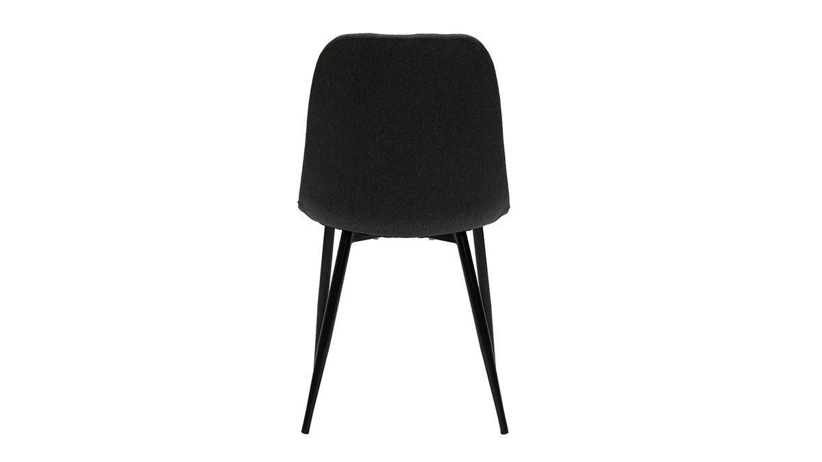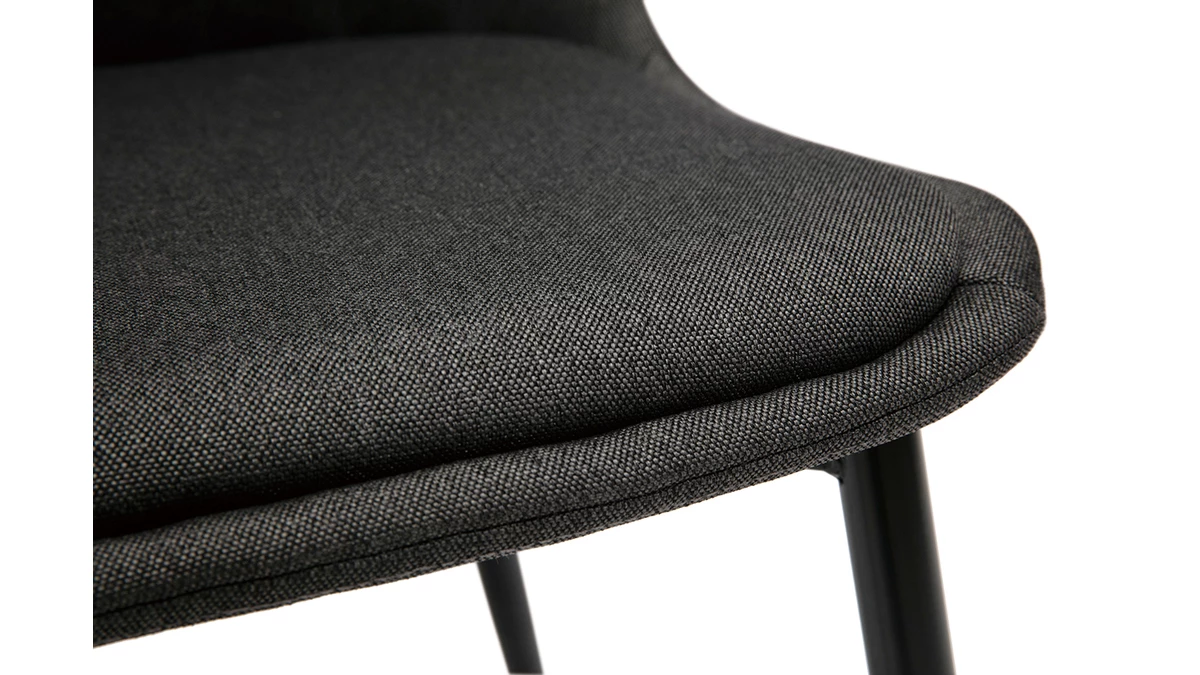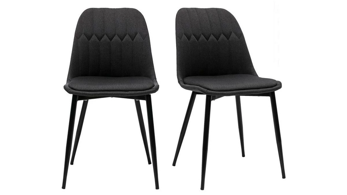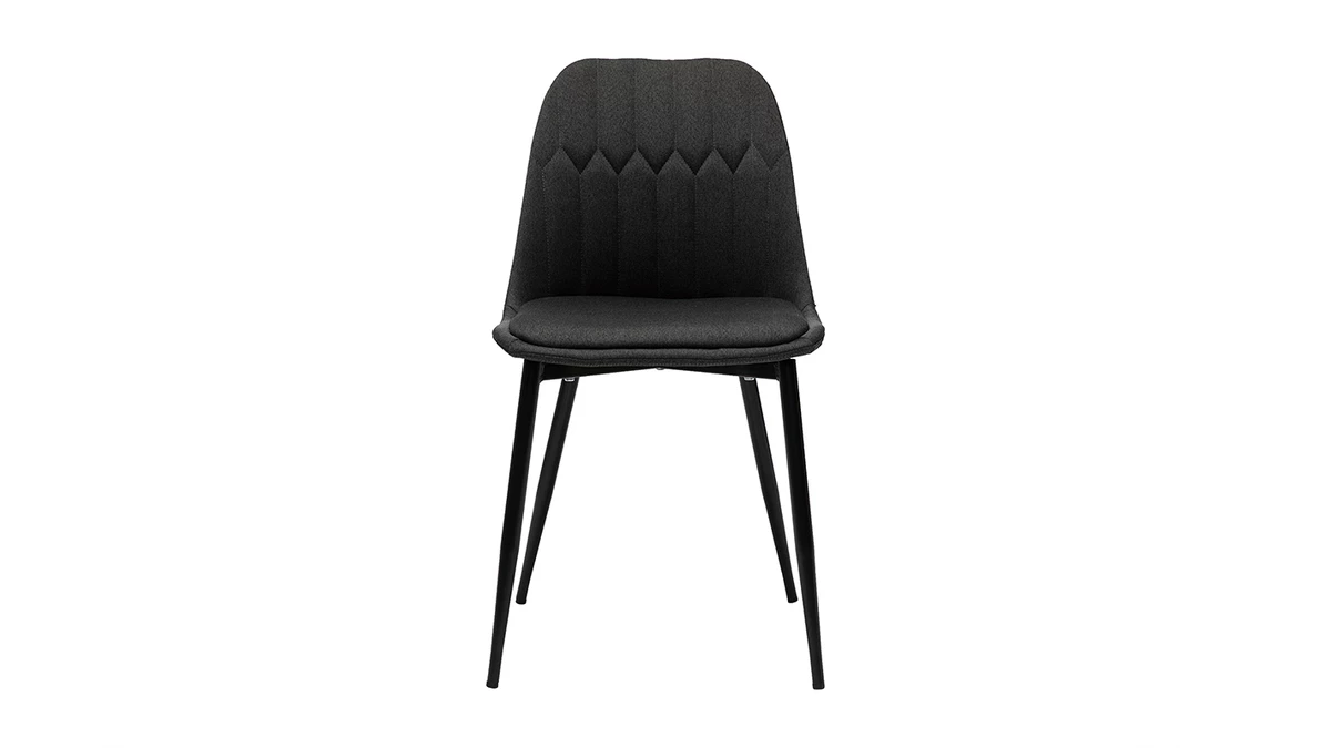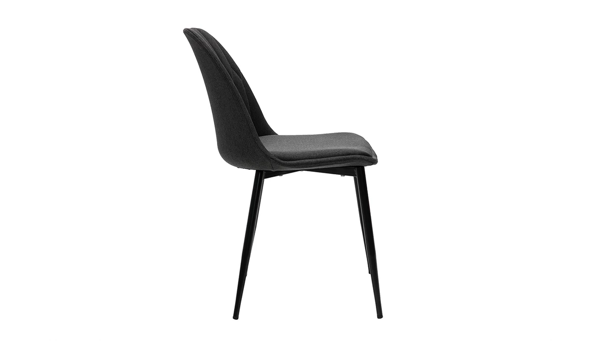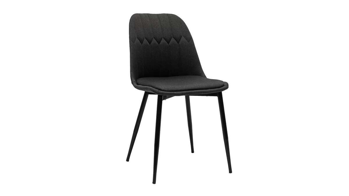 Avec leur sublime revêtement en tissu velours gris foncé (100% polyester) et leur jeu de surpiqûres décoratives, ces chaises modernes grises font souffler un vent de renouveau dans nos intérieurs. Élégant et très original, l’effet matelassé qui orne la partie intérieure du dossier confère à ces chaises une identité graphique affirmée. Les pieds élancés en métal noir se marient à merveille au tissu velours.