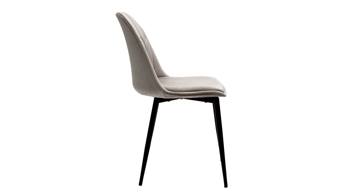 Avec leur sublime revêtement en tissu velours taupe (100% polyester) et leur jeu de surpiqûres décoratives, ces chaises modernes taupe font souffler un vent de renouveau dans nos intérieurs. Élégant et très original, l’effet matelassé qui orne la partie intérieure du dossier confère à ces chaises une identité graphique affirmée. Les pieds élancés en métal noir se marient à merveille au tissu velours.