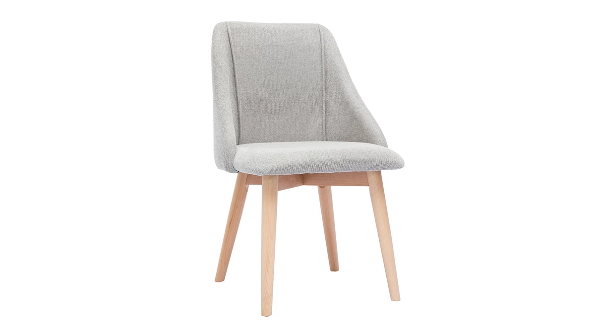 Ces chaises légères et polyvalentes allient confort et convivialité. Avec leur dossier enveloppant (H40 cm) et leur assise généreusement rembourrée, elles jouent la carte de la douceur. Les formes douces répondent aux teintes naturelles dans un équilibre parfait et une élégance subtilement décontractée. Leur tissu effet velours texturé gris et s’accorde parfaitement avec le piètement en hêtre massif. Détail de style : les deux surpiqûres situées à l’intérieur du dossier souligne la ligne graphique sobre et affirmée de ces chaises.