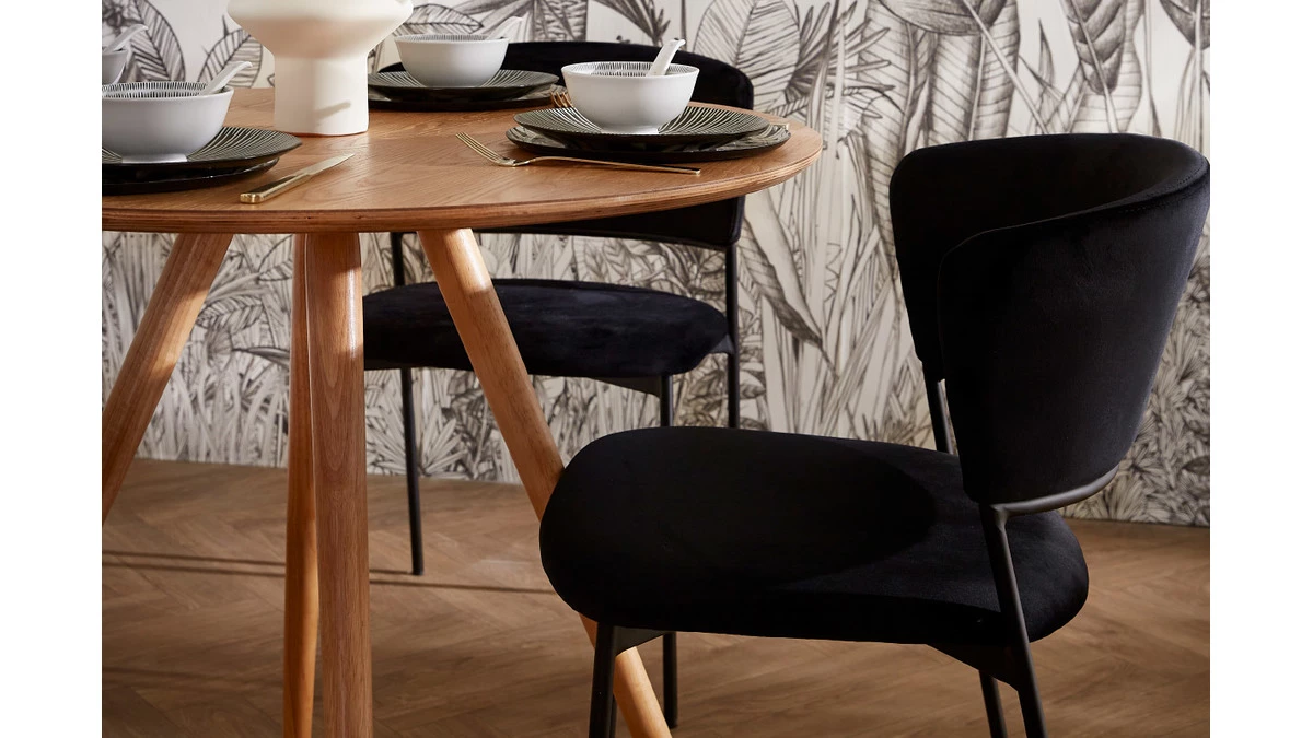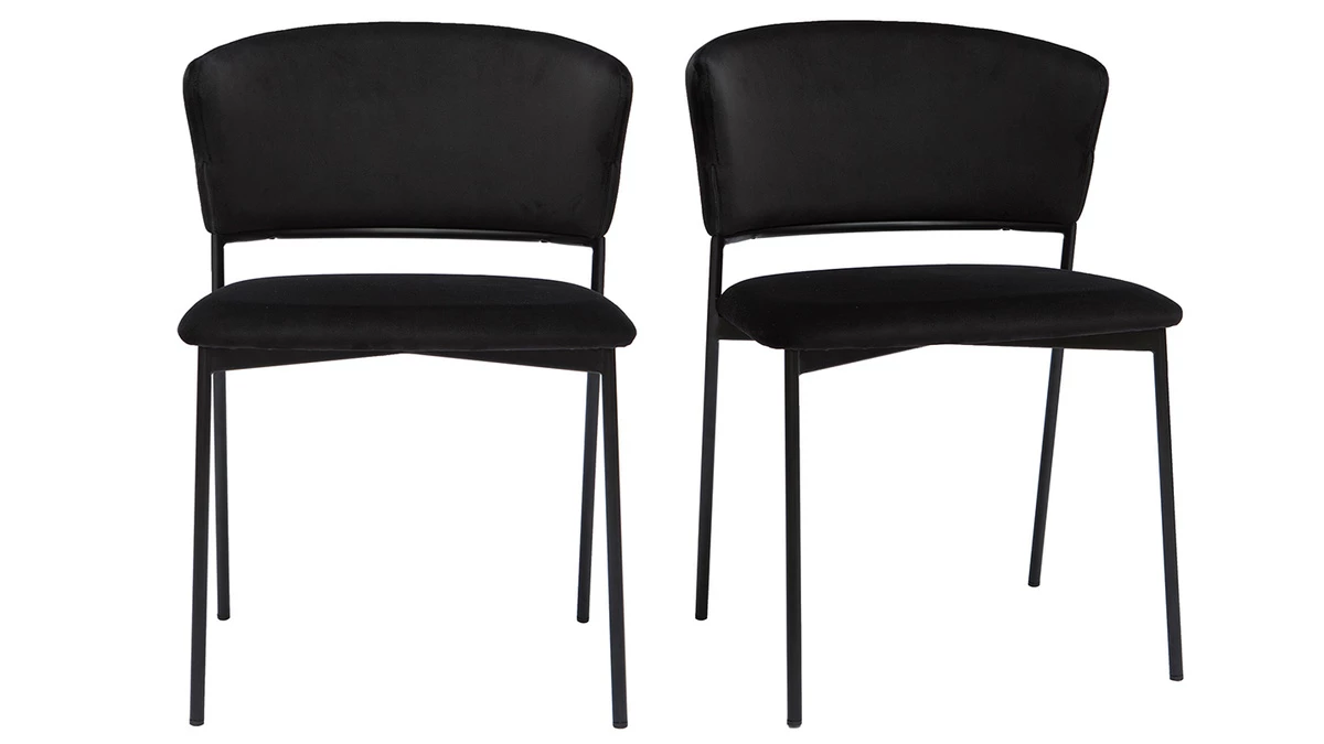 Leur structure en métal dessine une silhouette fine et délicate. D’une grande légèreté visuelle, ces chaises design habillent la table à manger avec élégance. Dossier et assise sont revêtus d’un magnifique velours noir. Ce tissu au rendu chic par excellence s’invite à votre table pour lui redonner toute sa noblesse. L’élégance intemporelle de ces chaises en tissu noir trouve sa place dans tous les intérieurs. Les salles à manger modernes comme les tables vintage ont trouvé leur perle rare.