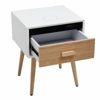 Table De Chevet ConnectĂ©e MultimĂ©dia Blanc Mat Et FrĂȘne PAVAN