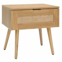 Table De Chevet En Bois Clair, Cannage Rotin Et Métal Noir L50 Cm MANILLE