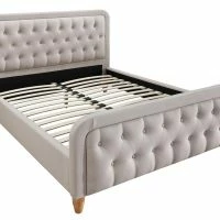 Sommiers Tapissiers Tissu Blanc Pieds Bois 90 X 200 Cm (lot De 2) JAMI