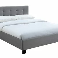 Lit 2 Places 160×200 Cm En Tissu Gris Foncé Capitonné HOLSEN