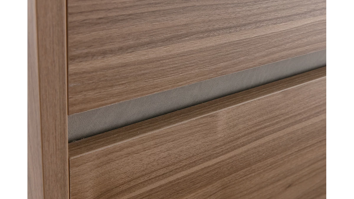 Avec sa jolie finition bois chêne, cette commode en bois foncé réchauffe véritablement l’atmosphère de la pièce. Son design et sa teinte intemporels lui permettent de trouver sa place dans toutes les ambiances. Chambres scandinaves comme contemporaines ont trouvé leur meuble de rangement idéal. Grâce à son style indémodable, ODE est une valeur sûre qui nous séduit durablement. Pour une décoration harmonieuse de l’espace nuit, on l’associe à des tables de chevet en bois.