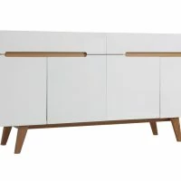 Avec ses lignes sobres et épurées, cette commode en bois aux dimensions L100 x P40 x H100 cm se plie à tous les styles de déco. La finition chêne (panneaux de fibre de bois mélaminé) se caractérise par de jolies nuances dorées ainsi que des noeuds et veines marqués. On aime le contraste entre le côté chaleureux et authentique du bois et le travail fin du métal. Le piètement métallique haut de 20 centimètres en métal noir permet de libérer de la place au sol et d’élever le meuble pour plus d’esthétisme.