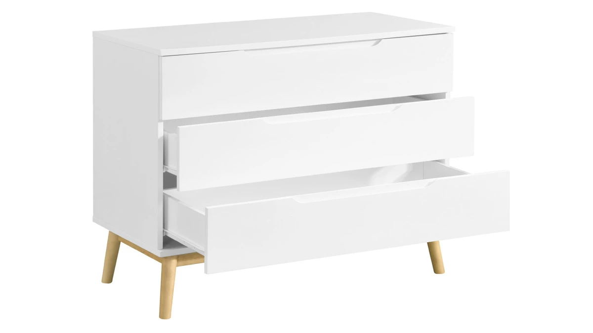 Dans le plus pur esprit nordique, la commode FELIX mêle le blanc au bois blond.