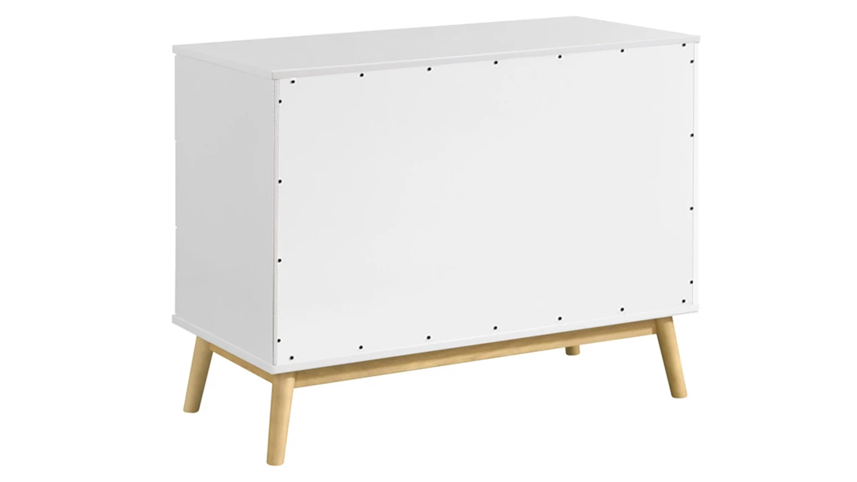 Cette commode scandinave aux lignes essentielles est réalisée en panneaux de fibres de bois blanc mat.