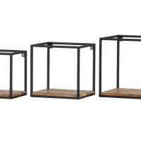 étagères Murales Carrées En Métal Noir Et Manguier Massif (lot De 3) YPSTER